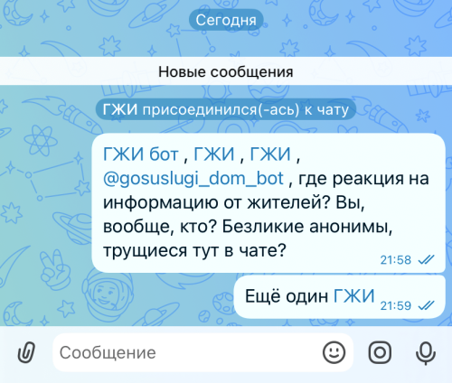 Сомнительные аккаунты и боты в марте 2026 года являются даже не рядовыми читателями домовых чатов многоквартирных домов Тольятти, а их администраторами и владельцами! Вопиющий пример того, как полностью анонимные аккаунты исправно отслеживают, что жители пишут в чатах, обнаружен на одном из домов Комсомольского района Тольятти и, есть все основания предполагать, что похожая ситуация будет на многих чатах городских многоэтажек. Настоятельно рекомендуем людям проверять списки пользователей, состоящих в их домовых чатах!
