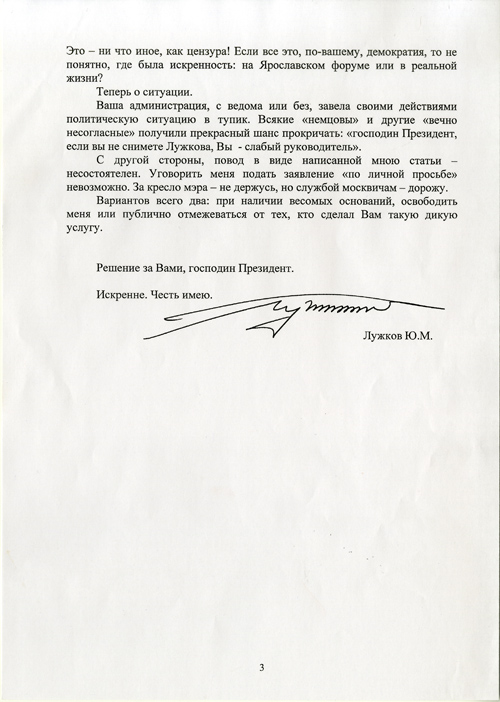 Я все таки не понимаю: за что конкретно его сняли? Формулировка «утрата доверия» напомнила мне частушку: «Лаврентий Палыч Берия не оправдал доверия. Осталися от Берии только пух и перия»