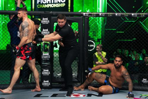 Его титульный бой с мастеровитым Кириллом Кохнюком из Санкт-Петербурга продлился вместо пяти запланированных раундов менее трех минут. Сергей убедительно доказал, что соперничество в клетке для него приоритетнее любого треш-тока, в чем упражнялись соперники до поединка.